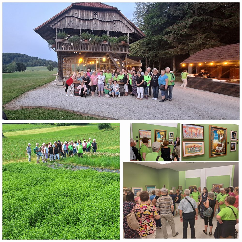 Prijetno ohlajen in prostoren avtobus, saj nas je bilo le nekaj čez trideset, nas je ob dogovorjeni uri odpeljal na Eko kmetijo Rogelj, ki je bila prva z našega programa. Sprejeli sta nas simpatični Urška in Mojca, pridružil pa se je tudi lastnik kmetije Alojz. Popeljali so nas na sto metrske »špure« zasajene z zelišči, z omamnimi vonji in okusi, degustacija njihovih izdelkov in napitkov v senčki sredi vročega popoldneva, pa je bila prava poslastica. Bilo je doživetje in priložnost spoznati zanimive zgodbe, ustvarjanje, trdo delo in njihovo ljubezen do narave.